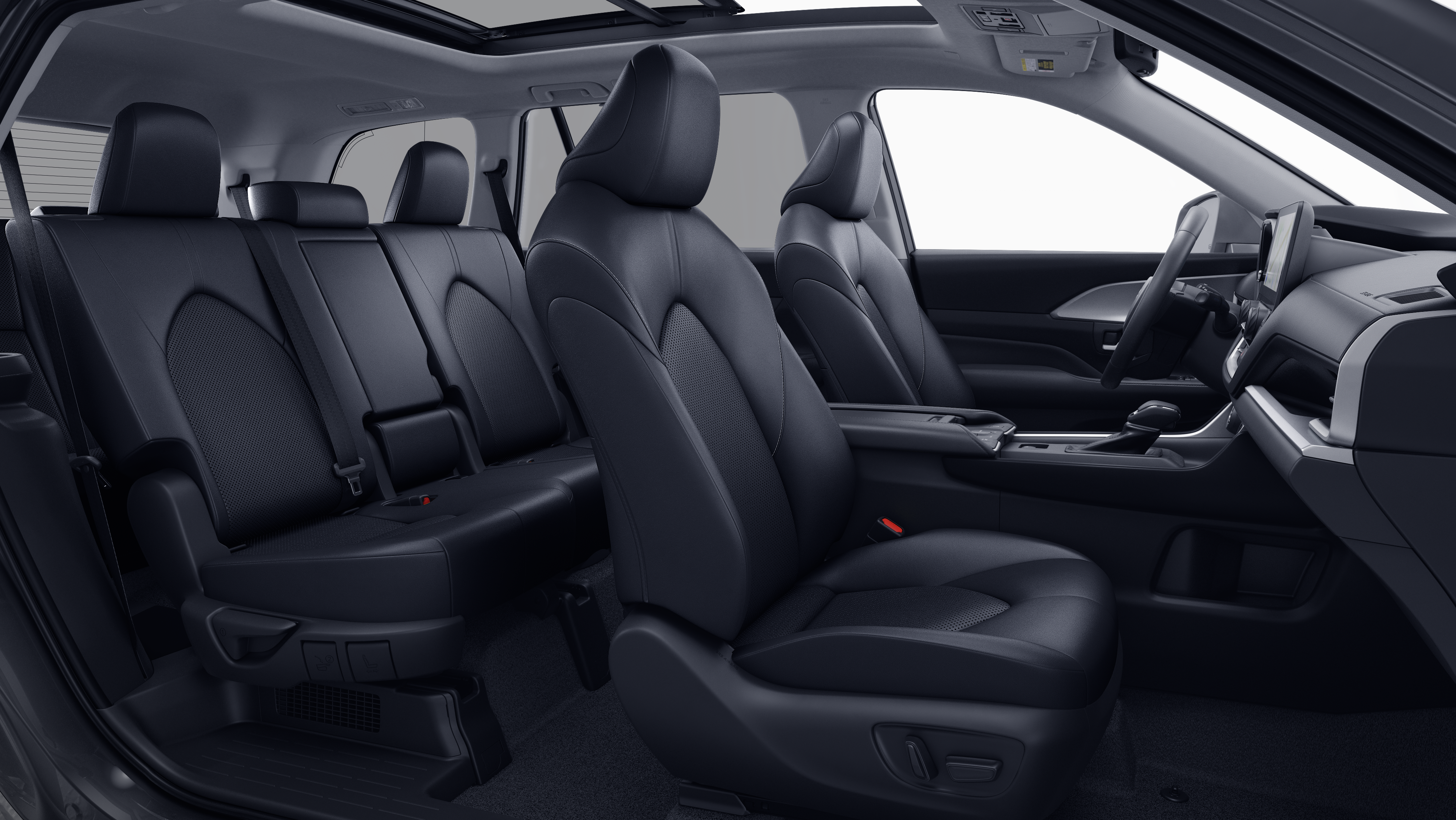- 7-passenger seating with second-row fold-down captain's chairs and fold-down inboard armrests, adjustable headrests and two cup holders mounted on the floor; and 60/40 split, fold-down third-row seats with sliding headrests and recline function